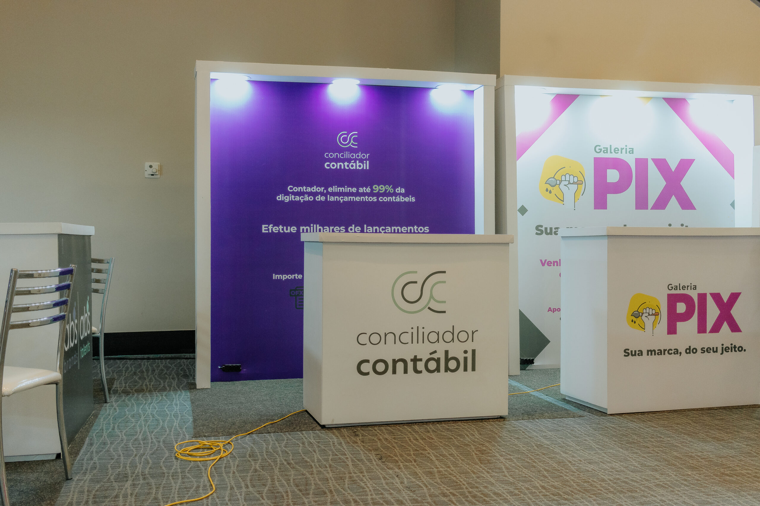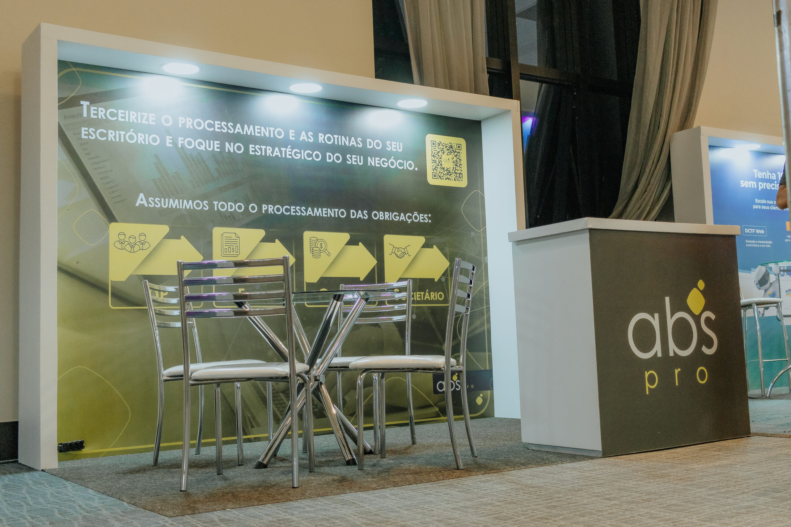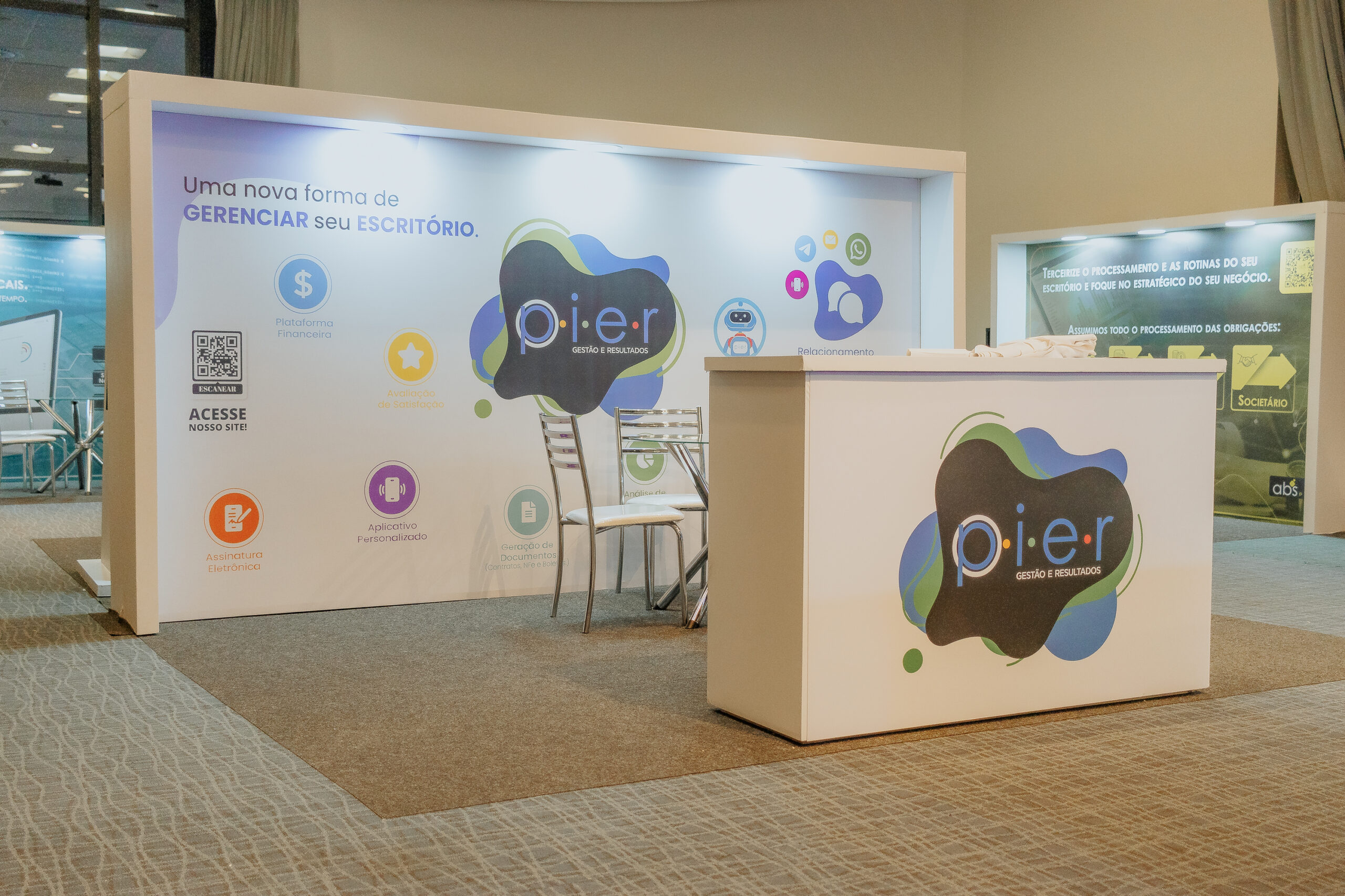 Essa diferença no material faz toda a diferença na percepção da sua marca durante o evento: o resultado é um stand com aparência sólida, bem-acabada e alinhada à identidade da sua empresa — sem o aspecto comum dos modelos convencionais.